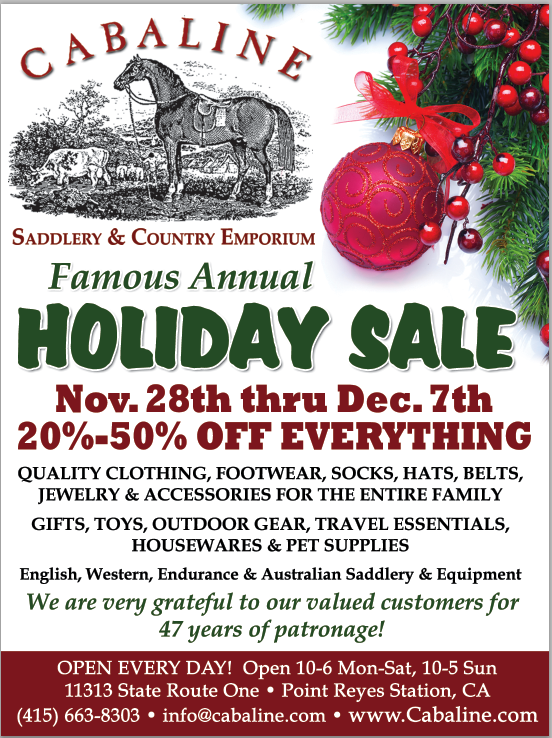 Cabaline is well known for a wide selection of English, Western, Australian, and Endurance saddlery, equipment, and riding apparel and is located next to the extraordinary trails and beaches of the Pt. Reyes National Seashore.